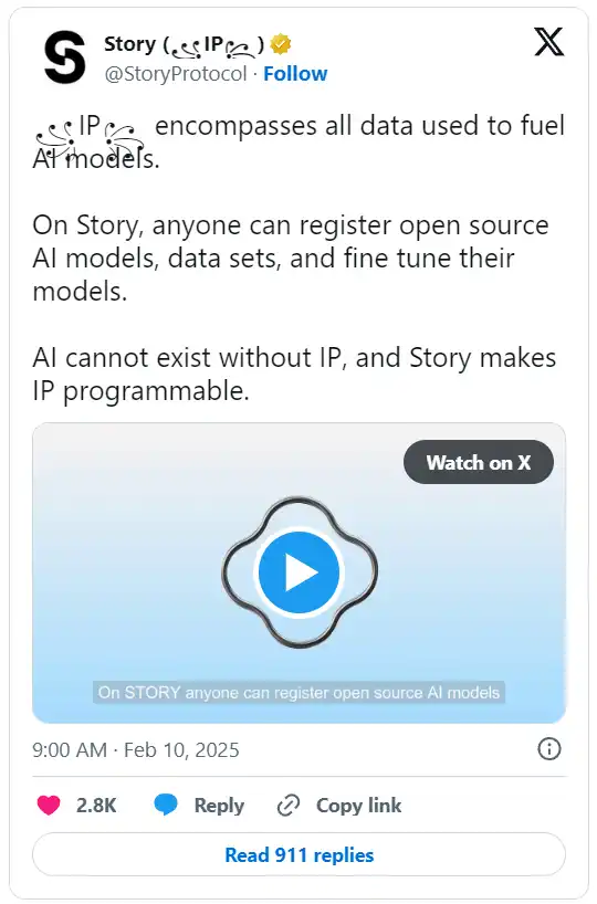 或许最重要的是,这种新形式的 AI-IP,是人工智能和区块链相交的十字路口:真正自主的人工智能代理需要区块链作为与价值进行互动的基础。在 Story 上,Ai agent 将能够通过训练来学习 Story 上的所有 IP,而 IP 持有者将因为把 IP 存储在 Story 上而被激励,他们便可从围绕人工智能军备竞赛的大规模淘金热中获利。在这里,代码成为法律,创意成为软件原生、人工智能驱动的未来的财产。