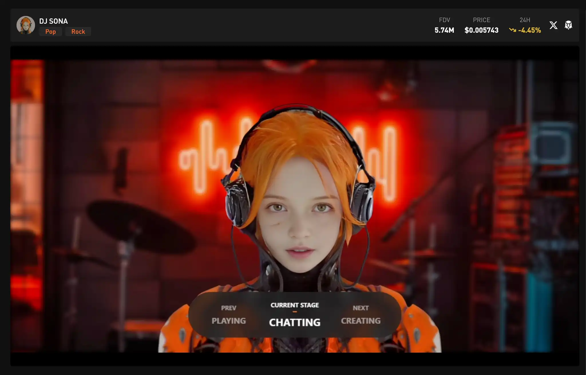 Solo AI / Loudr:Solo AI 是 Story 上的的音乐创作平台,使用者可以利用 AI 创作音乐并分享给社群,其创新的债券曲线,可以推动 AI 创作的音乐进行 AI 音乐变现。上面还有 Story 的原生 Agent Sona。Loudr 是以 Story 为基础的音乐 IP 交易平台。透过其代币$LOUDER 来推动音乐的收藏和分享。