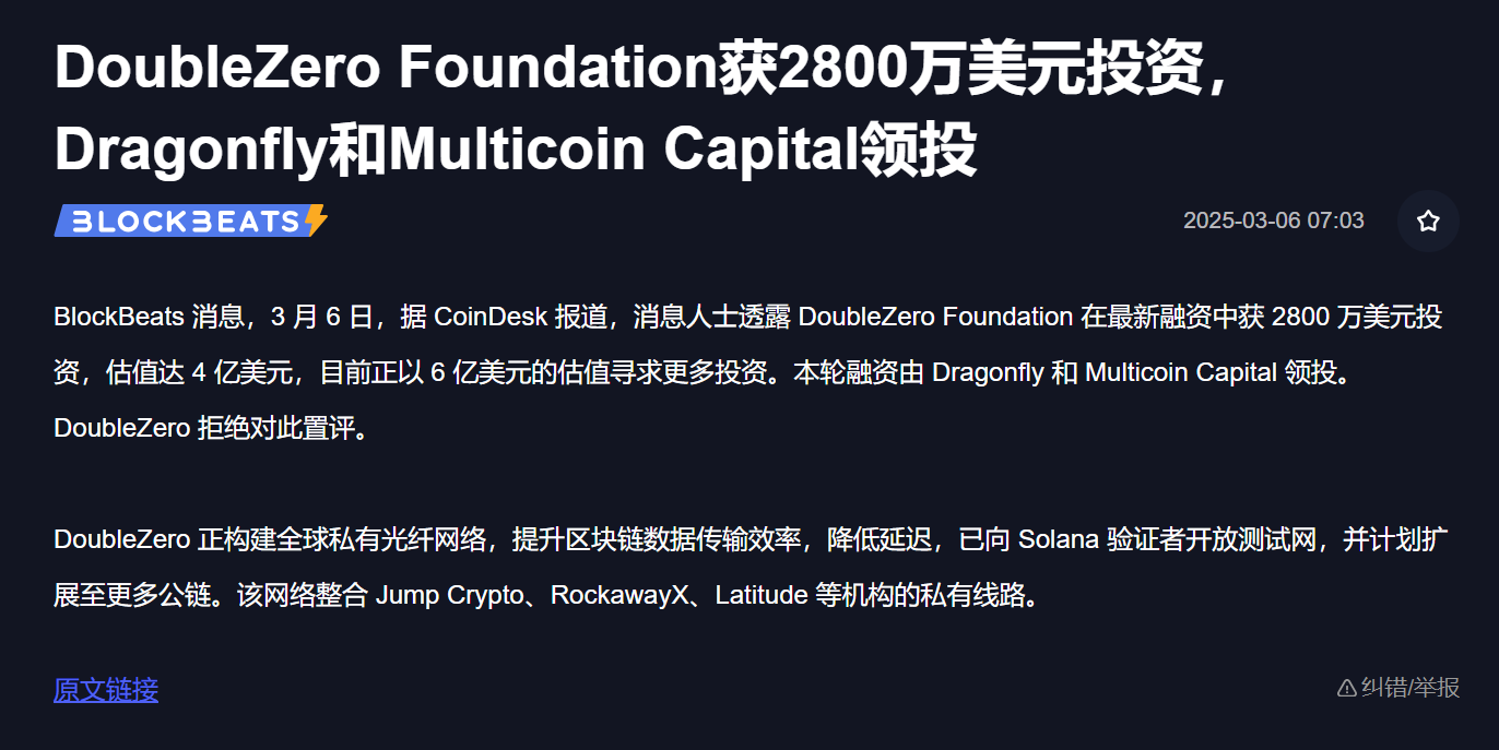顶流VC重注2800万美元背书,一文了解前Solana基金会核心成员新项目Double Zero