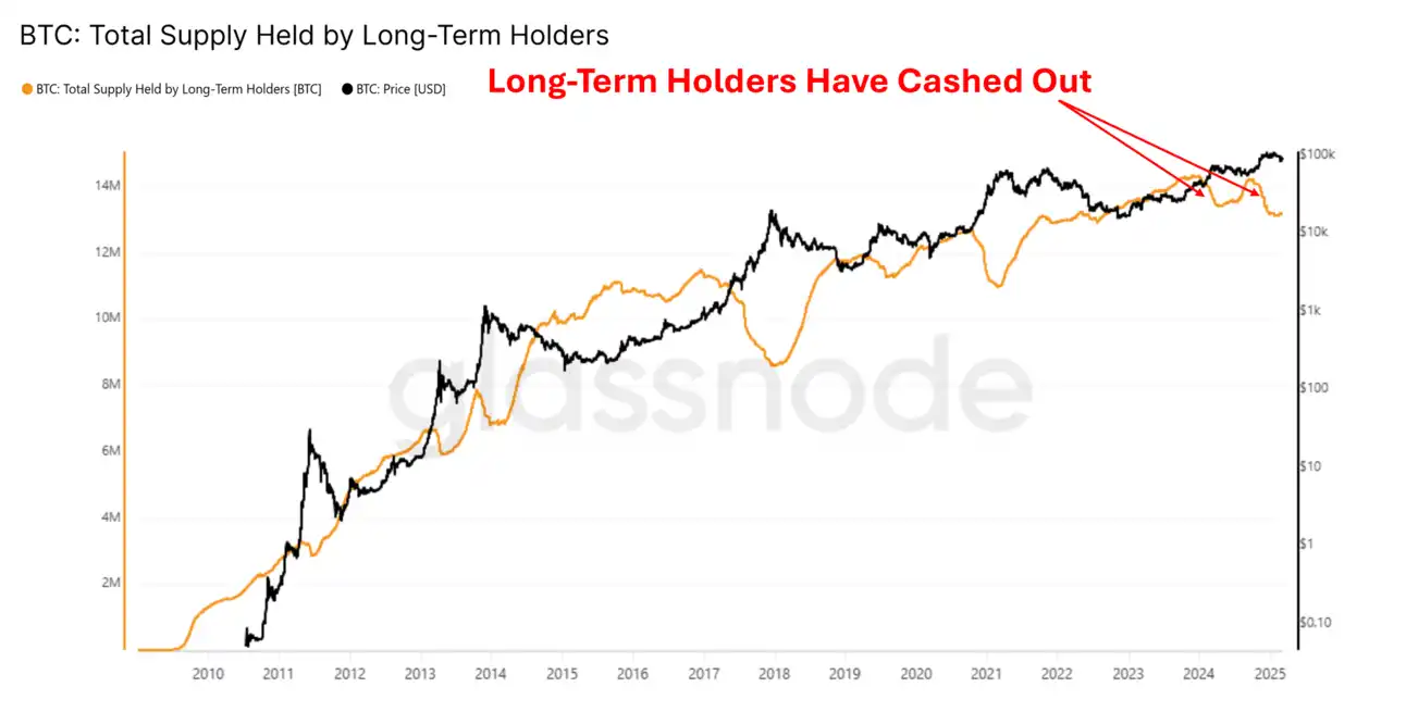 · 比特币的长期持有者在过去一年内两次获利了结。他们的已实现价格(即成本基准)目前约为 $25,000。而在高点买入的短期持有者目前平均成本基准为 $92,000,处于亏损状态。我们认为,随着市场意识到比特币的顶部已经出现在 $109,000,这部分短期持有者可能会继续在更低的高点抛售。