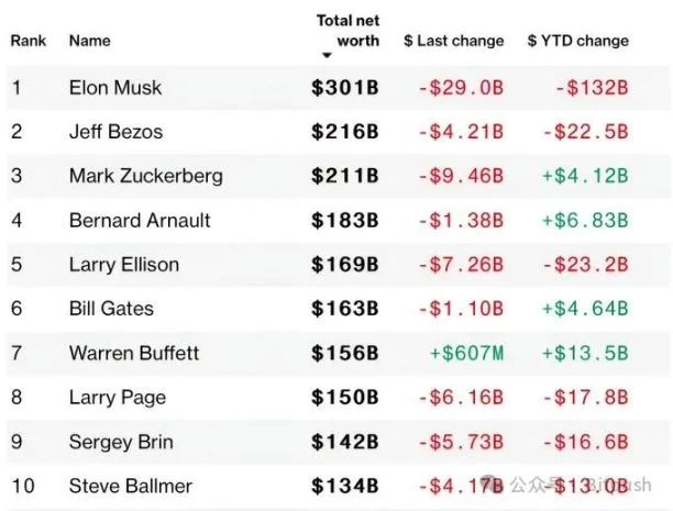 昨日华尔街遭遇「黑色星期一」,市场大幅下挫,印证了巴菲特的「预言」。投资者对经济衰退的担忧升温,引发市场恐慌性抛售。标普 500 指数从 2 月 19 日的历史高点下跌了超过 9%,距离「回调」(定义为从前期高点下跌 10% 或更多)仅一步之遥,Top 10 富豪榜中,仅巴菲特一人的净资产逆势上涨。