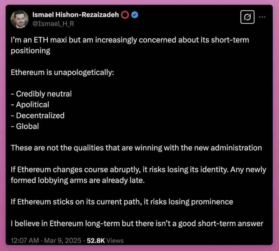 这就是我喜欢以太坊的原因。许多人批评以太坊基金会未能接近特朗普团队,但从长远来看,这将证明是一个胜利策略。