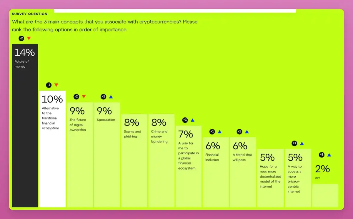 Consensys 每年发布出色的研究报告,他们的 2024 年报告显示,「货币的未来」这一加密货币叙事的衰退。投机、诈骗、钓鱼、犯罪和洗钱的情绪与「传统金融替代品」的加密货币一样普遍。