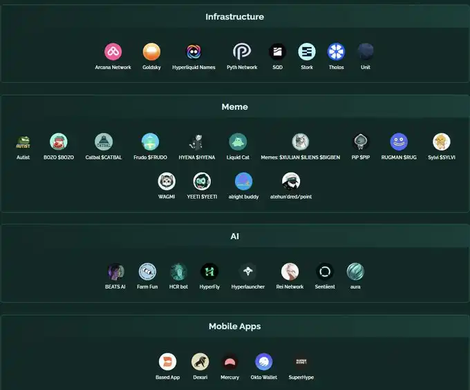 此外,Hyperliquid 还吸引了一批活跃的开发者,大多数项目都是原生构建在 HyperCore 或 HyperEVM 上,而不是从其他链跨链过来的。目前,HyperEVM 上线的项目还不多,因为许多核心功能尚未完全发布。然而,一旦 HyperEVM 走出「alpha」阶段,我们将看到大量项目从测试网迁移到主网。