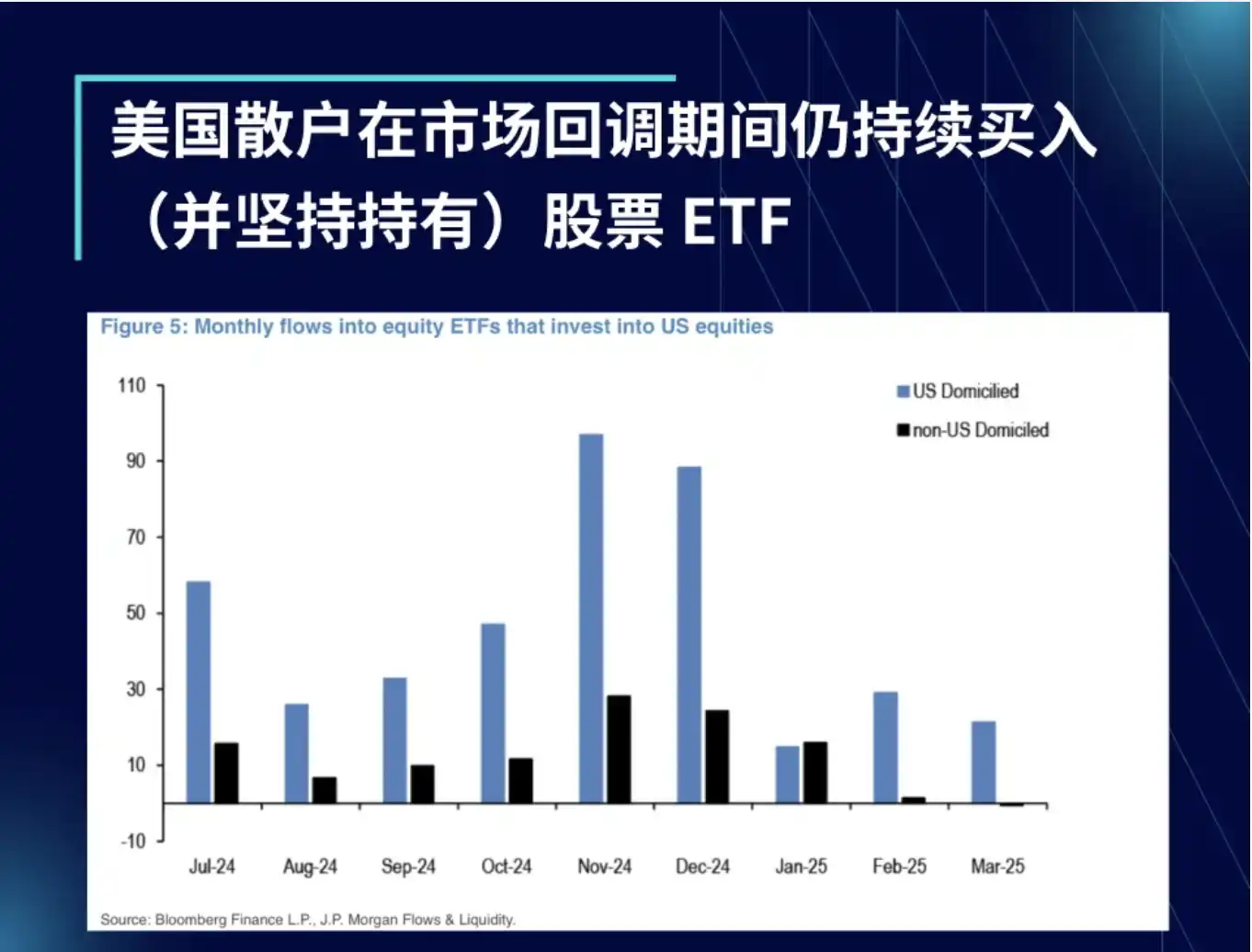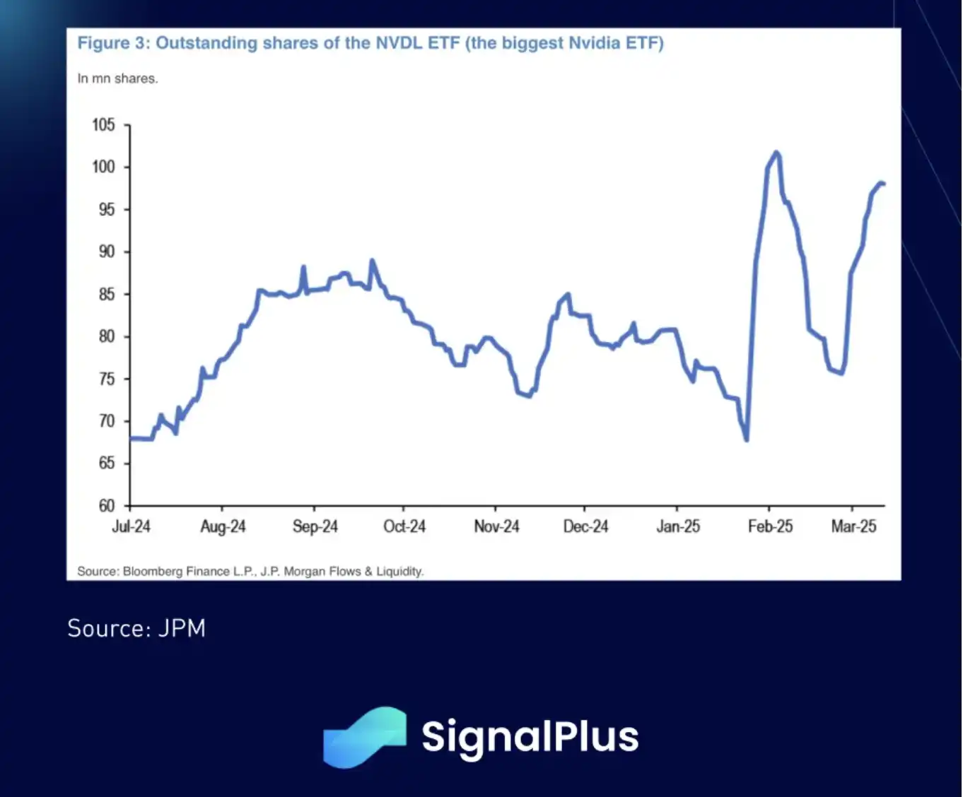 从数据来看,散户似乎尚未提前因应经济放缓。美股 ETF 自 2 月市场见顶以来几乎每天都出现资金净流入,而增长型 ETF(如 Nvidia)的持仓也反弹至历史高点附近。