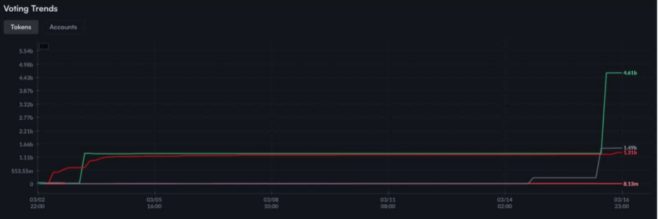 投票最后时刻的激增,最终使提案得以通过。资料来源:Mintscan