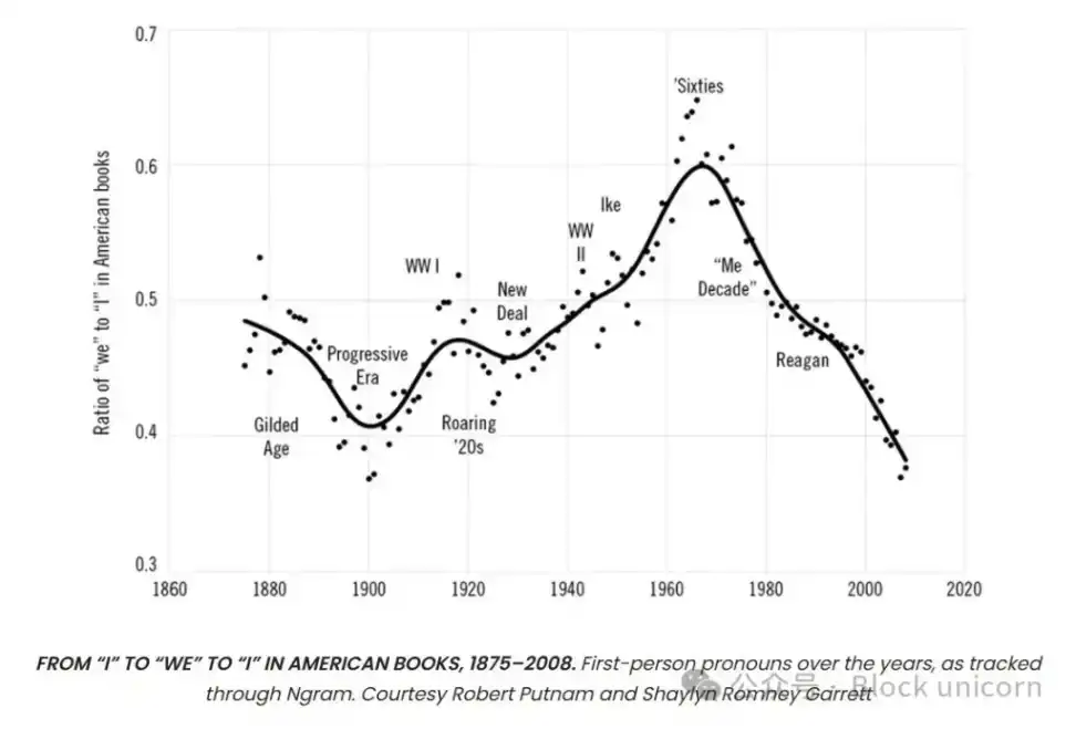 新政和战后时期甚至见证了美国书籍中「我们」一词代替「我」一词的巨大增长: