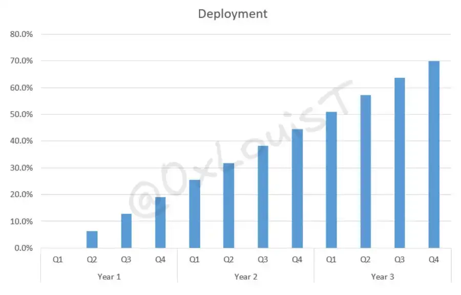 我假设风投在三年内线性部署 70% 的资金——这似乎是大多数风投的趋势。
