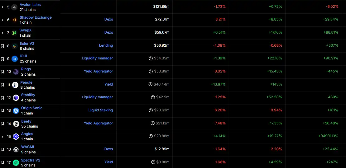 除此之外,Sonic 上进一个多月爆发了多个 DeFi 协议新秀,数据均为亮眼。各位读者也可以自行从 APY,风险等角度自行选择适合你的项目,在当前加密市场震荡阶段能够取得一个不错的稳定收益。
