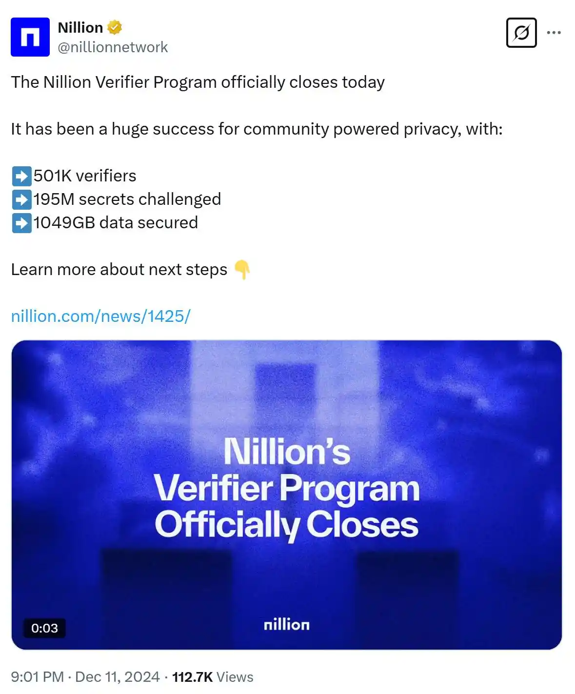 随着 Nillion 主网于 2025 年 3 月正式上线,其生态合作将进一步加速,为更多用户带来隐私安全的创新体验。