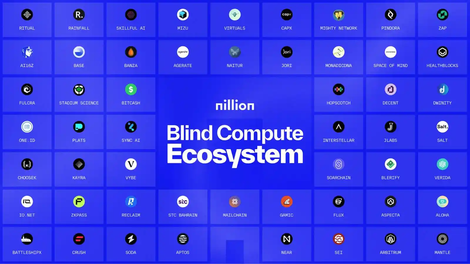 而通过 Nillion 公布的生态鸟瞰图中,我们也看到 Nillion 初具规模的生态版图,目前 Nillion 已经与包括 Aptos、Near、Arbitrum、Mantle、Virtuals、Fractal 等在内的超 50+ 项目达成合作,涵盖 DeFi、AI、DeSci、公链、DAO 等多个板块。