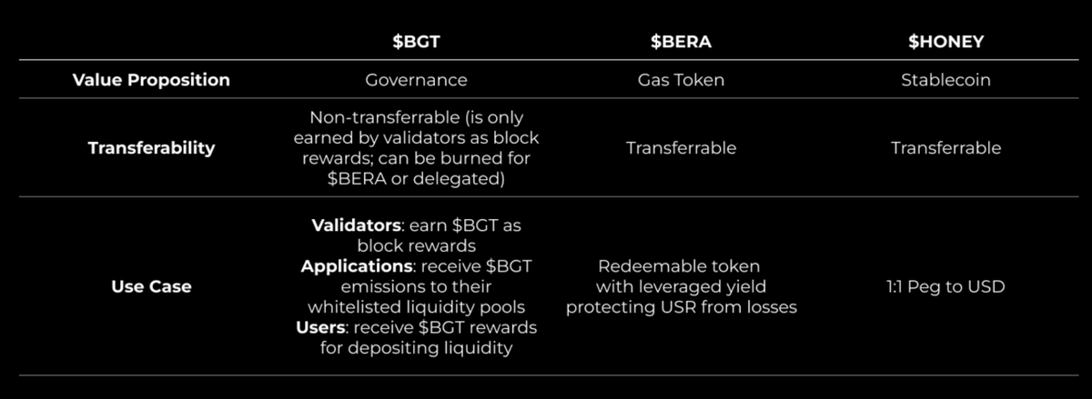 根据 Honeypaper,Berachain 生态由两种功能明确的代币驱动: