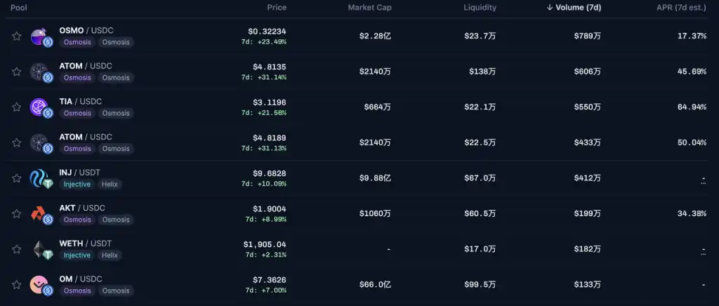 目前 Cosmos 生态代币的链上交易并不频繁,日均交易量在 1000 万美元以下。