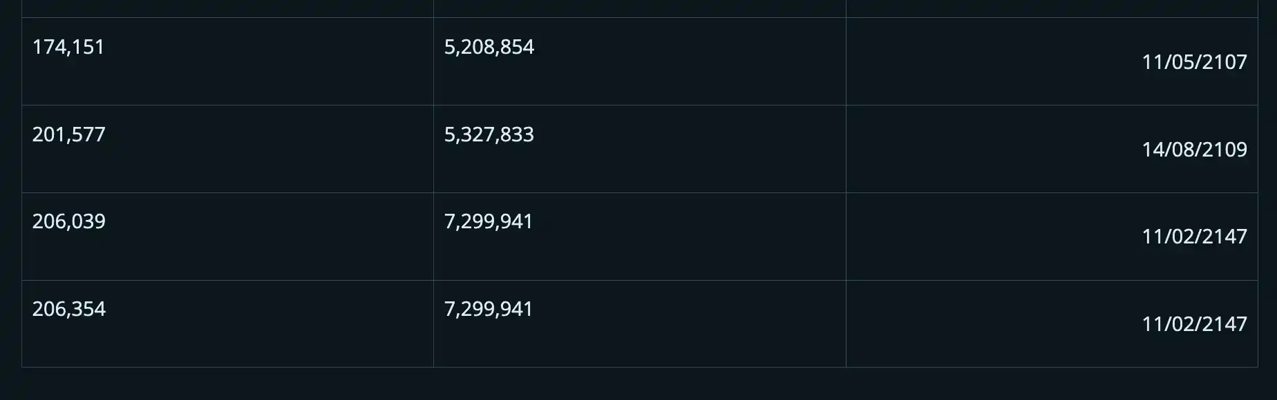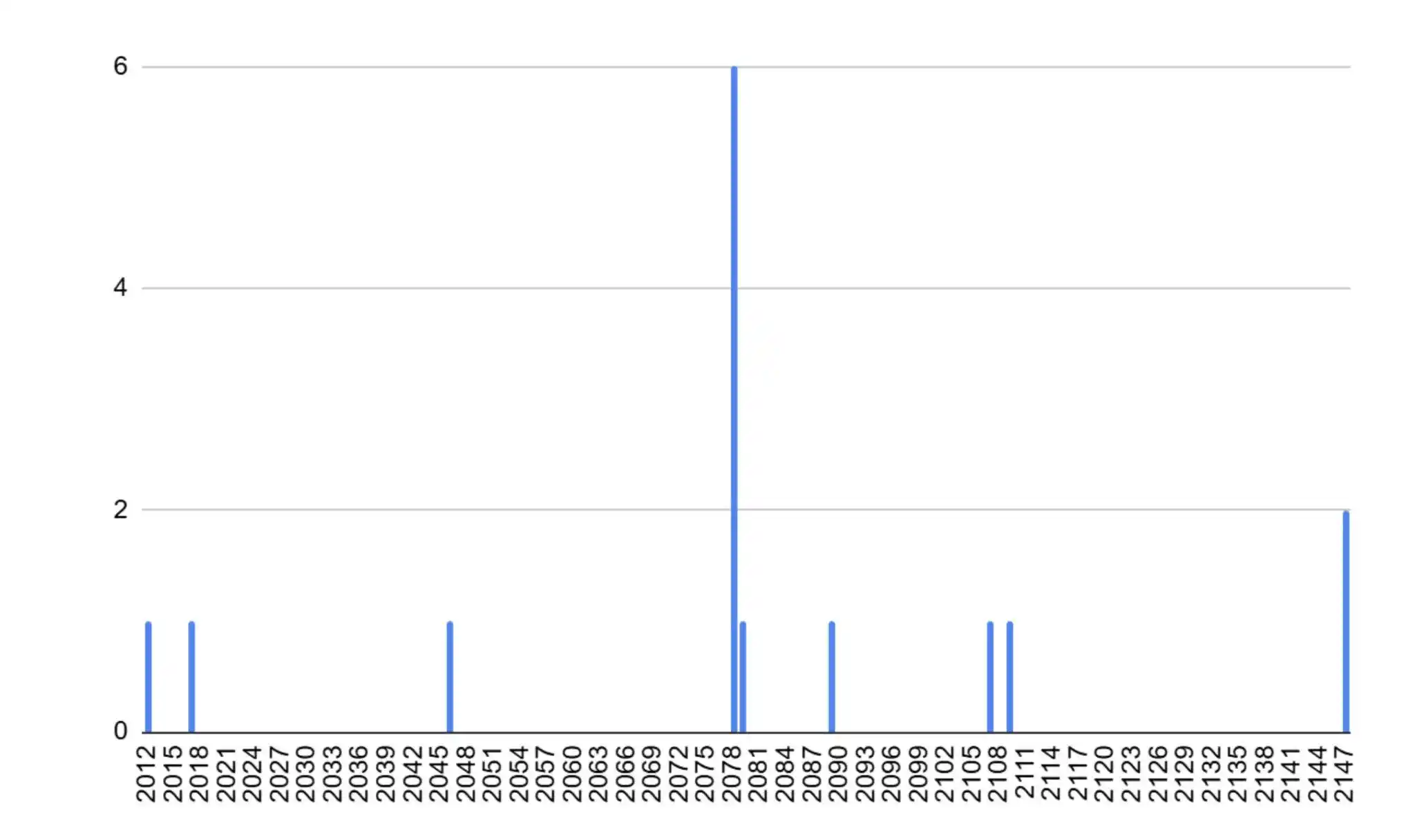 下一个可能被复制的脆弱区块是 2012 年 3 月的 169985。这个 Coinbase 只花费了刚刚超过 50 BTC,远远低于 170 BTC。当然,50 BTC 是当时的补贴,而当这一 Coinbase 交易在 2078 年变得容易被重复时,补贴就会低得多。因此,要利用这一点,矿工将需要烧掉大约 50 BTC 的费用,而这些费用他们是拿不回来的,因为这些费用必须发送到 2012 年的旧产出中。谁也不知道 2078 年比特币的价格会是多少,但这种攻击的成本也可能高得吓人。因此,这个问题可能不是比特币的主要风险,但仍然令人担忧。