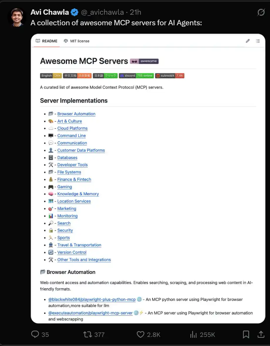 …还有更多的 MCP 服务器正在开发中,旨在让 AI 之间的通信更加无缝: