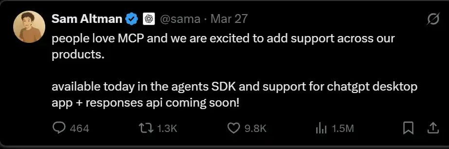 来自 Anthropic 以外的 CEO 们也在承认 MCP 在推动 AI 代理未来发展中的重要性: