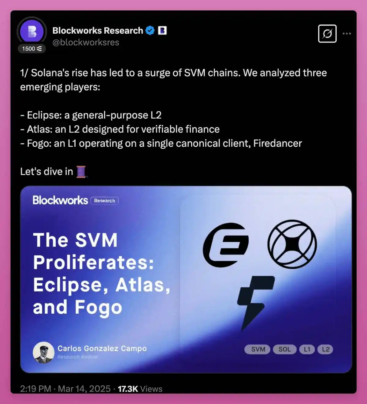 Eclipse 和 Atlas 是 Fogo 上的另外两个 SVM(Solana VM)链。