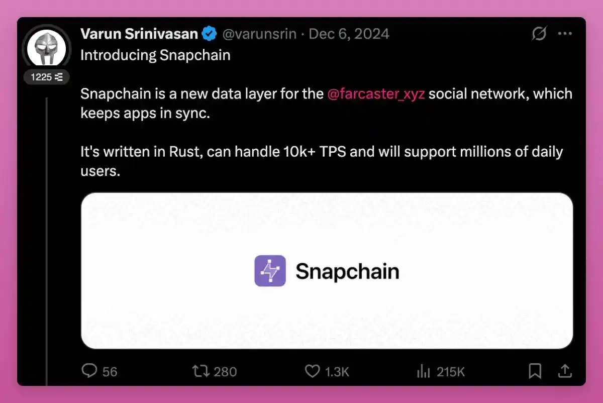 这就是为 Farcaster 社交网络构建的 L1 Snapchain 的用武之地。