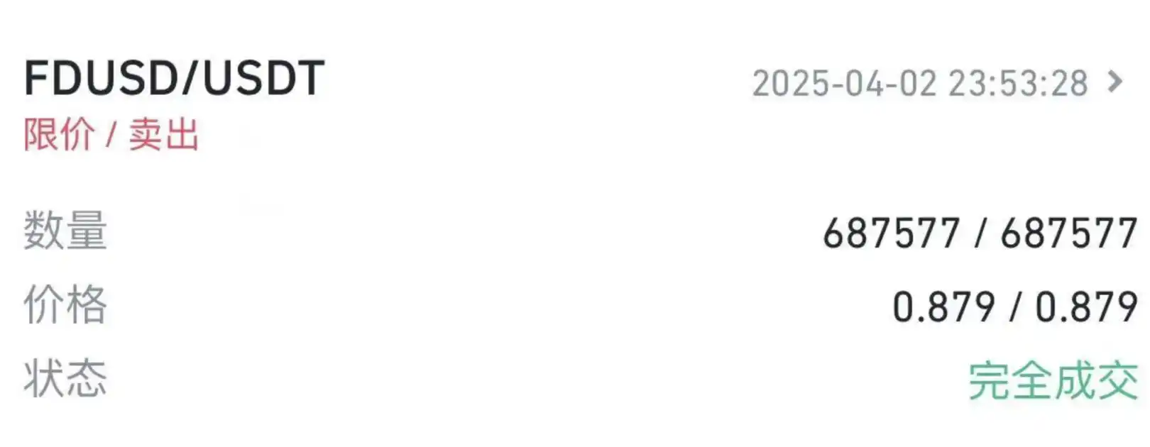 4 月 2 日 23 点,波场创始人 Justin Sun 发文控诉稳定币 FDUSD 发行方 First Digital Trust(FDT)资不抵债,无法履行客户资金赎回。受其影响,FDUSD 短时严重脱锚,Binance 上 FDUSD/USDT 最低跌至 0.87,FDUSD/USDC 一度跌至 0.76。