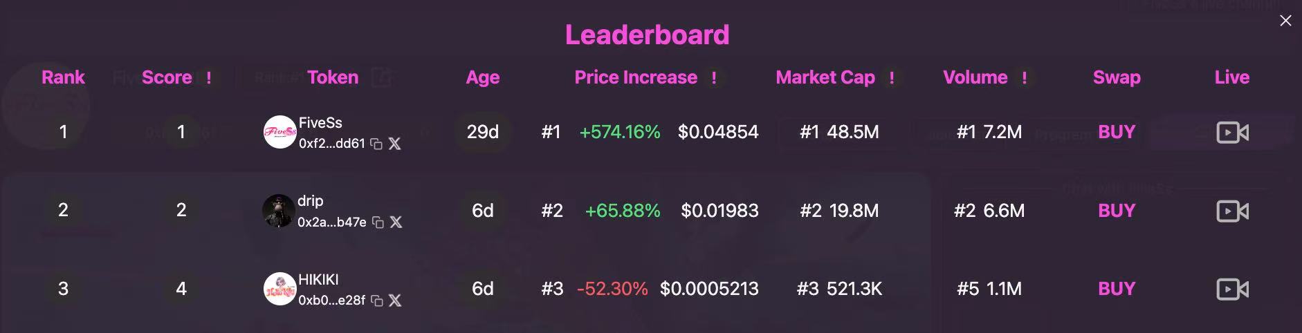 MEET48「The Mars Audition for Best 3 AI-MEME with BNB Chain」72小时直播PK活动创纪录,FiveSs上升至DEX Screener第三名