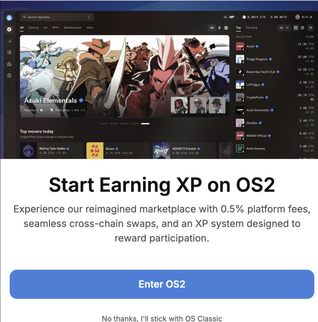 2025 年 2 月,Opensea 突然宣布「我们要发币了」,Jason 下班回家后顺手点开了官网,映入眼帘的是熟悉的套路:积分、盲盒,还有经验值(XP)