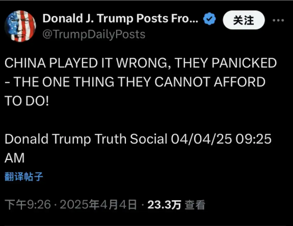 另一方面中国成为全球第一个反制「对等关税」的国家,宣布对美对等征收 34% 的关税,特朗普在自己的社交媒体「Trust Social」表示中国在这个事情上做了错误的决定。而欧盟也准备在 4 月 9 日投票回应如何对部分美国产品加征报复性关税,欧盟贸易委员谢夫乔维奇与美国官员会晤后表示,欧盟愿谈判但也已准备好捍卫自身利益。