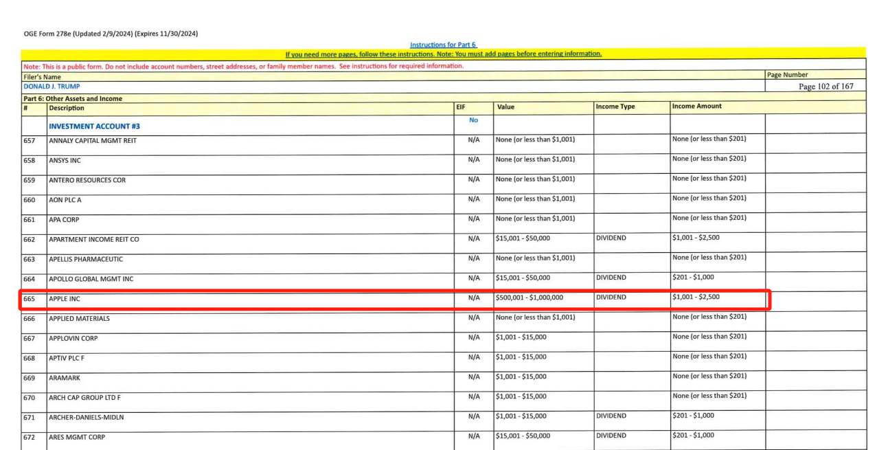图源特朗普个人财务披露报告