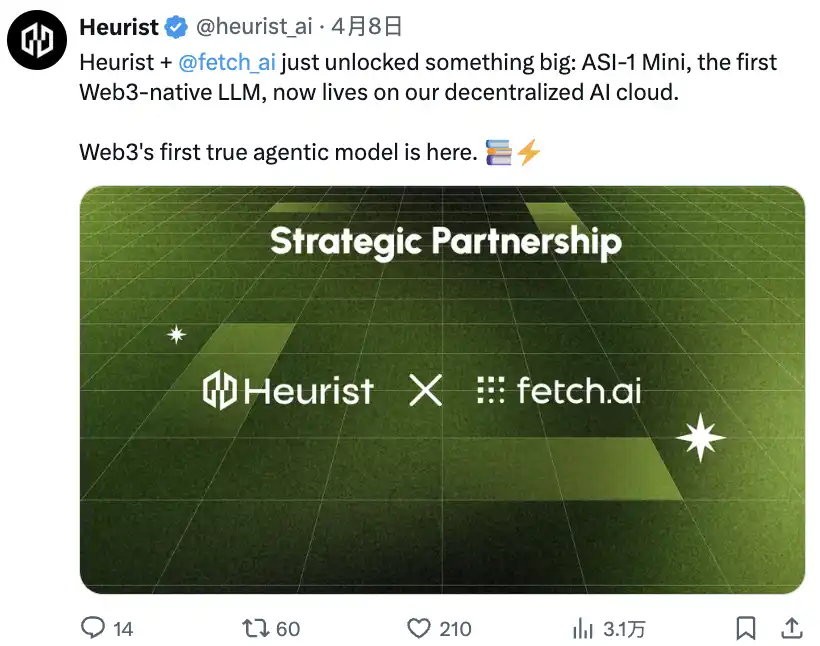 @Fetch_ai x @heurist_ai:ASI-1 Mini 在 Heurist 上线!