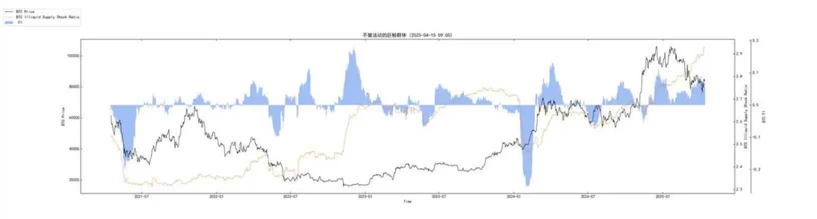 1. ⾮流动性供应增⻓速度近期显著放缓,表明⻓期巨鲸边际积累动⼒在⾼位减弱;