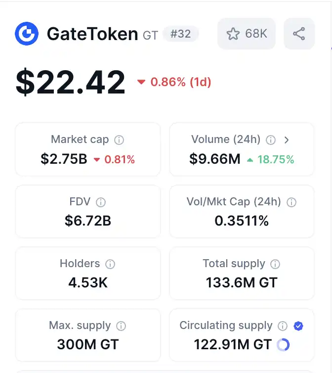 值得关注的是,GT 的市值/交易量比率显著低于 BNB 等头部平台币,这意味着其估值仍存在较大的修复空间——若 Gate.io 保持现有增长态势,GT 的市值对标潜力或将进一步释放。