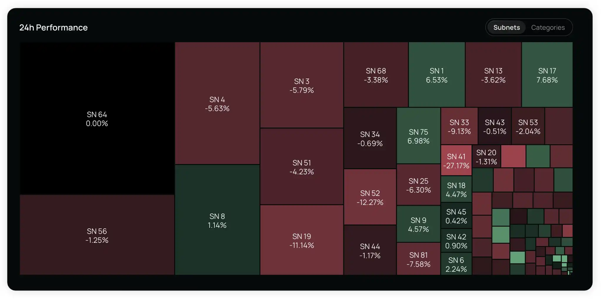 其次是「互助盘」。可惜的是,Bittensor 的子网发币并不能建立像 Solana 上 Pump.fun 一样资金可以高度流转的互助盘模式,因为 Bittensor 的网络基建非常差,甚至不同子网代币之间无法进行交换,导致子网代币的参与者很难在不同子网之间迁移流动性。这更加恶化了高拆分率带来的流动性稀释问题,做不到像一样可以让资金留在场内持续参与投机。