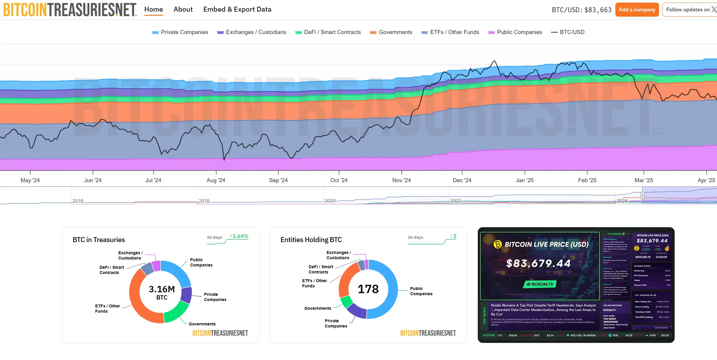 根据 Bitcointreasuries 的数据,截至 2025 年 4 月 16 日,共有 178 个主体合计持有超过 316 万个 BTC,其中上市公司持有约 665,636 个 BTC,且这一数字还在快速增长。这股「微」风潮席卷全球,涉及 26 家美国上市公司、22 家加拿大上市公司以及 8 家中国(含香港)上市公司,不乏一些原本市值低迷、鲜少被关注的边缘企业。