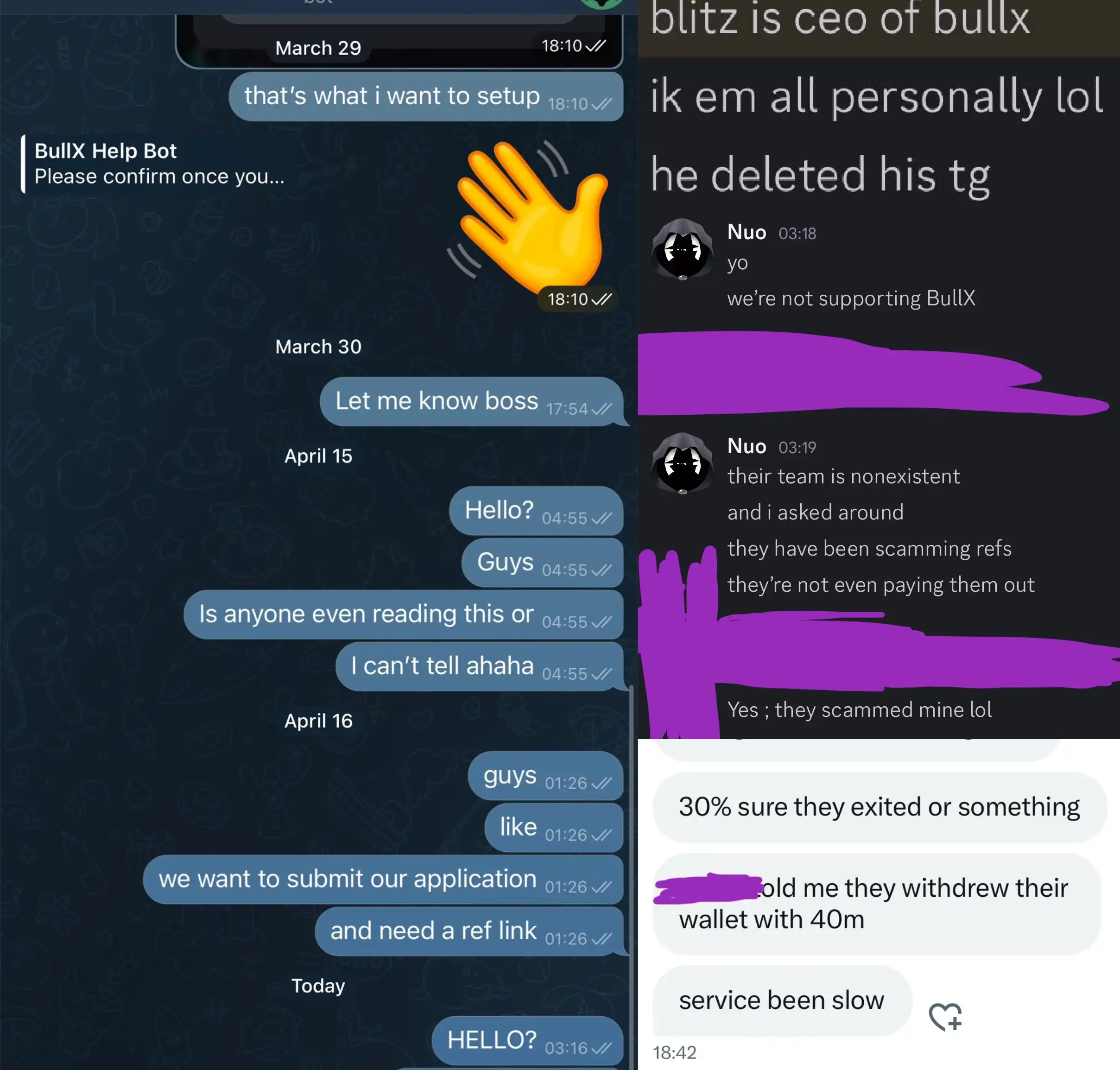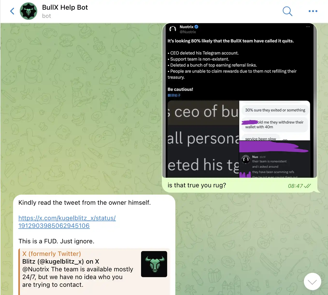去年 11 月份 Dexx 暴雷的导致 1000 余人损失超 2100 万美元的教训还历历在目,今日社群中又有关于另一龙头交易平台 BullX 团队可能意思「跑路」的贴文再度迅速传播,而这一切究竟是暴雷还是另一场商业战争式的「FUD」呢?