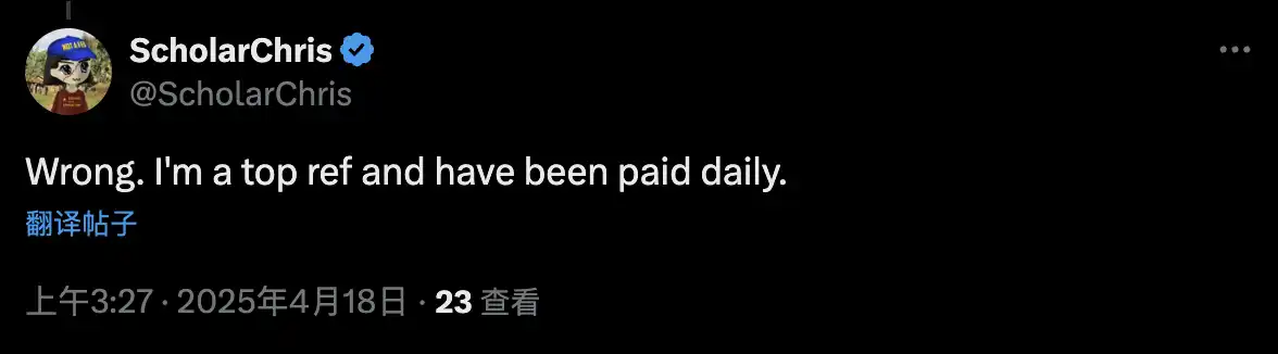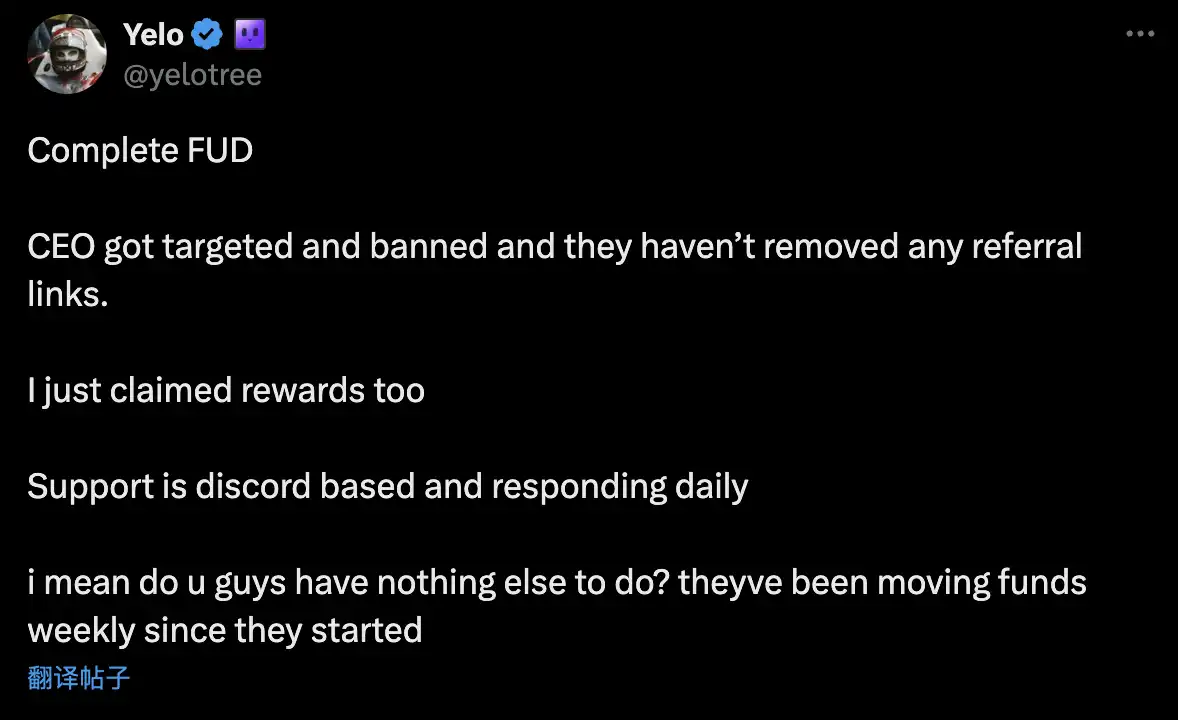在社区尝试 Claim 自己奖励后发现,奖励功能是完善的,Nuotrix 表示自己指的是每天从 BullX 赚取 10000 美元的人推荐链接被删除以停止支付,而目前每天收入 2000-3000 美元的人领取的金额比显示的要少,并附上了一些人在 Discord 中讨论的论证。