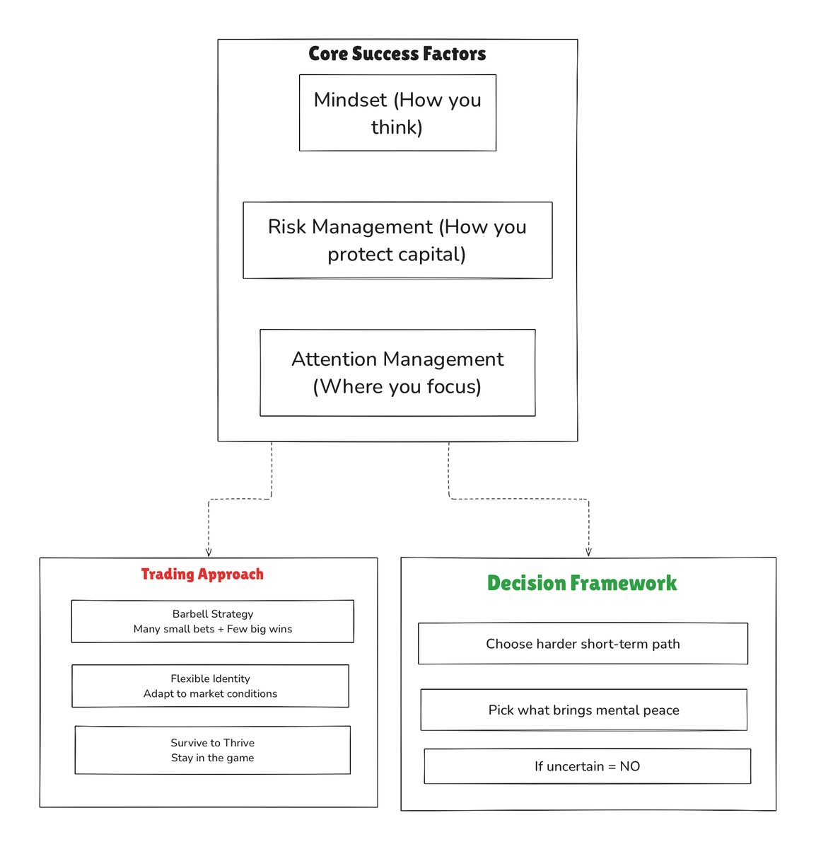 通过专注于风险管理而非追求正确,你将交易从预测游戏转变为概率游戏——一个让你能坚持足够长时间、抓住改变人生的罕见机会的游戏。