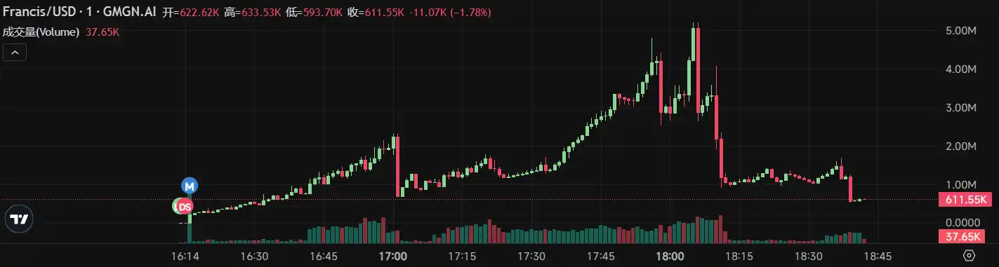FRANCIS 代币以教皇方济各名字命名,在消息公布不久后市值最高超过 5M 美元,目前已大幅回落至 600K 美元左右。这一代币是短期炒作「名人效应」的典型代表,缺乏基本面支持,只靠情绪情绪,热度下降后迅速归零。