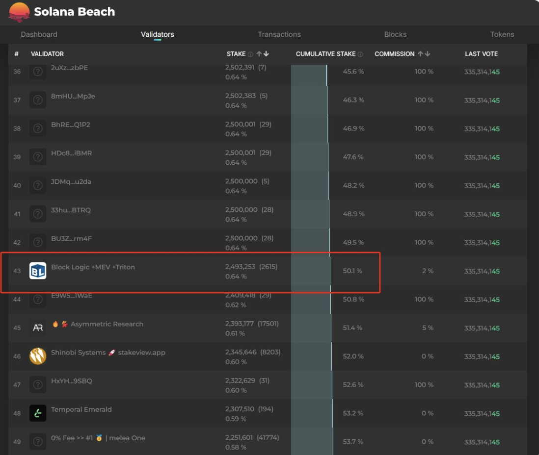 先来假设一个情况:有个神奇的黑客,利用 0day 漏洞,成功黑掉亚马逊和主流云服务商的机房。那么,控制 Solana > 50% 需要同时拿到前 43 名的节点。很难,但并非不可能。