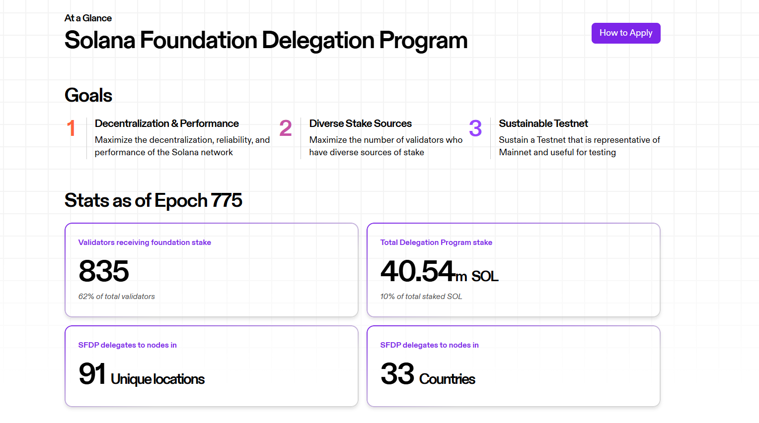 至于为何基金会的支持直接关系到不少验证者的生死。我们再来回顾一下 SFDP 计划,Solana 基金会委托计划 (SFDP) 是 Solana 生态系统中支持验证者网络发展的核心机制之一。该计划的设立初衷是为了在网络早期阶段引导增长,降低验证者的进入门槛,特别是通过提供基础委托,帮助资本较少的验证者也能参与共识、获得奖励,从而促进验证者数量的增长和网络整体的安全性。