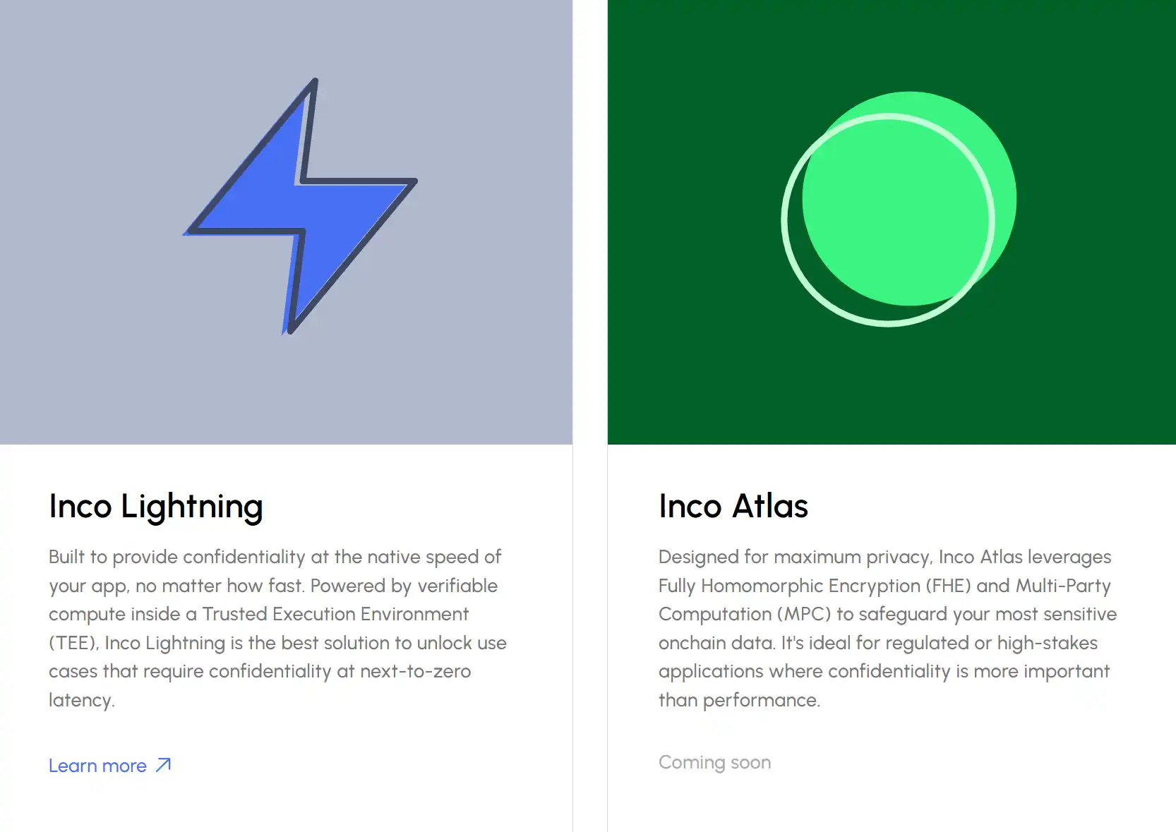 而 Inco Atlas 则更注重隐私,结合了全同态加密和多方计算,专为金融、医疗这些超高隐私需求的行业打造,正在持续开发中。简而言之,Lightning 和 Atlas 分别是「快」和「稳」的代表。