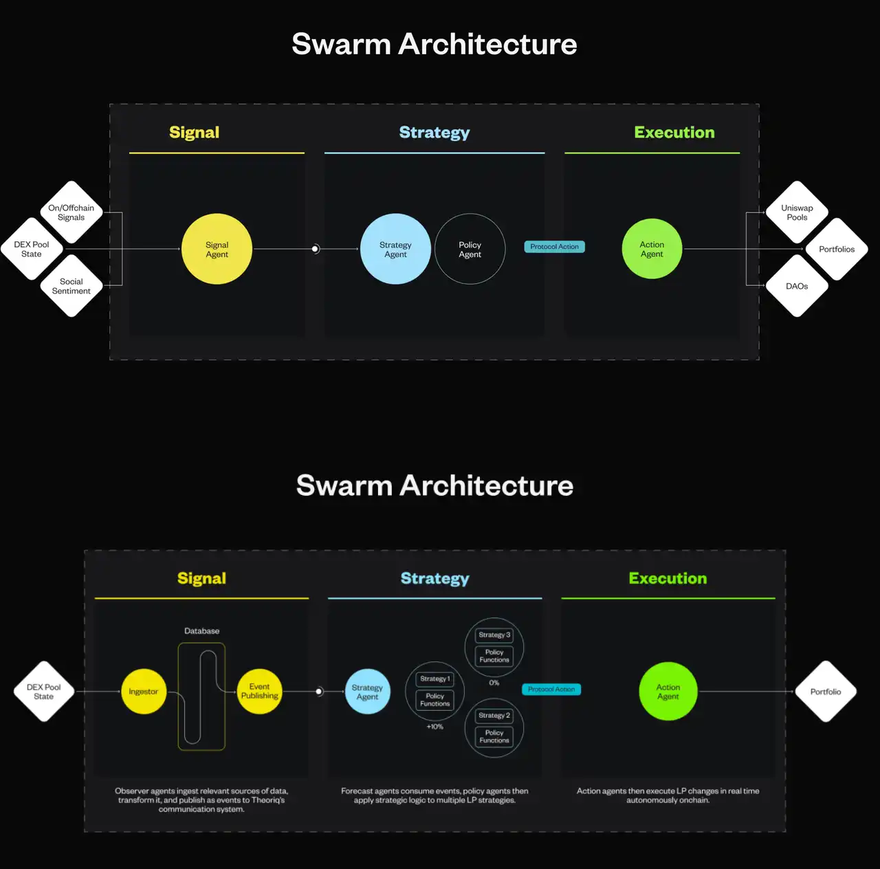 Theoriq 是一种模块化、可组合的 AI 代理基础层,功能据称也十分强大,包括机器学习、多 Agent 蜂巢合作、以及 DeFAI 的概念。所包含了当前几乎所有火热的概念,不管是哪一种已经有太多「前辈」,前仆后继的想要完成,不免让人心生「它跟其他 AI 有什么区别」的想法。