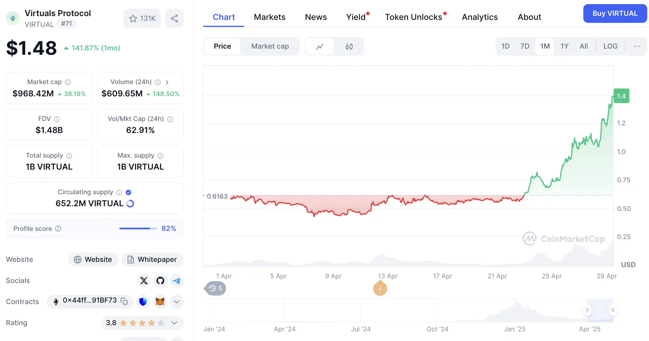Virtuals 在熊市持续 Build,准备了多个更新,在这个 AI 市场回暖的一瞬间,将准备的所有东西高频率的丢给了市场。仅仅一周,币价便上涨了 3 倍有余,市场反响热烈。