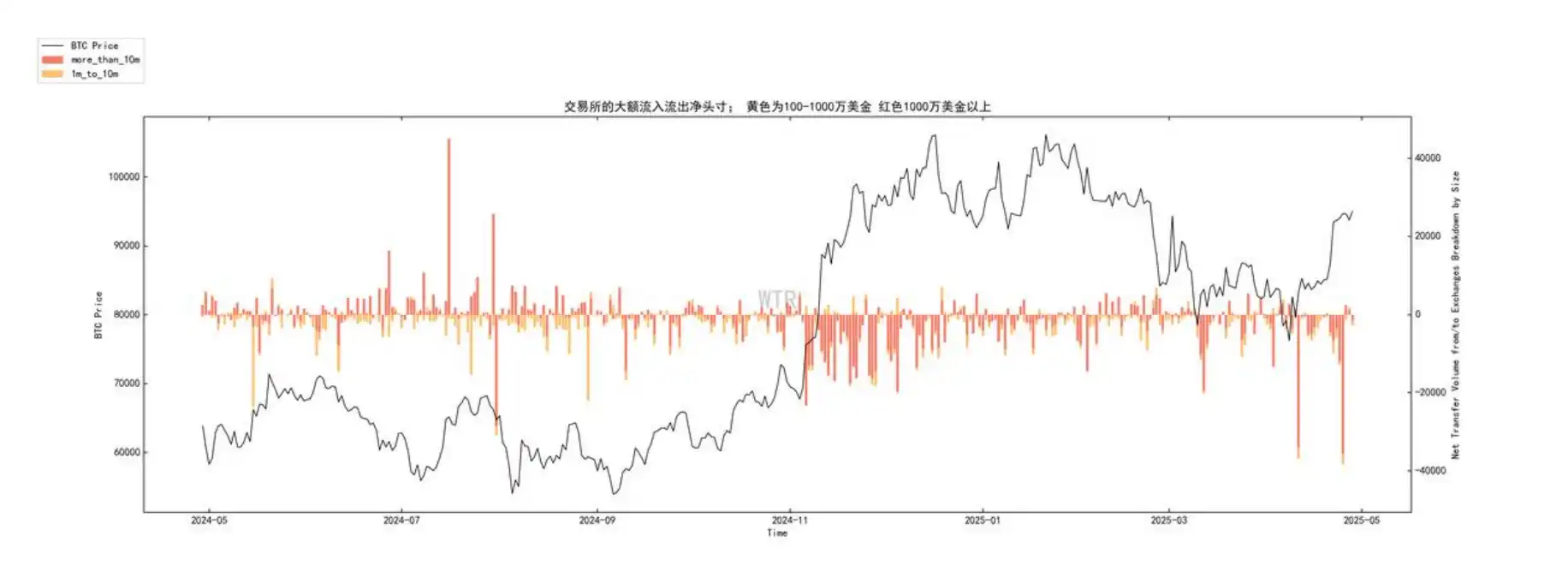 交易平台内部,此前有⼤量 BTC 流出积累现象,当前有所放缓。但截⾄⽬前并未表现出流⼊积蓄潜在抛压的结构性变动,可能市场尚且处于调整的安全边界中。