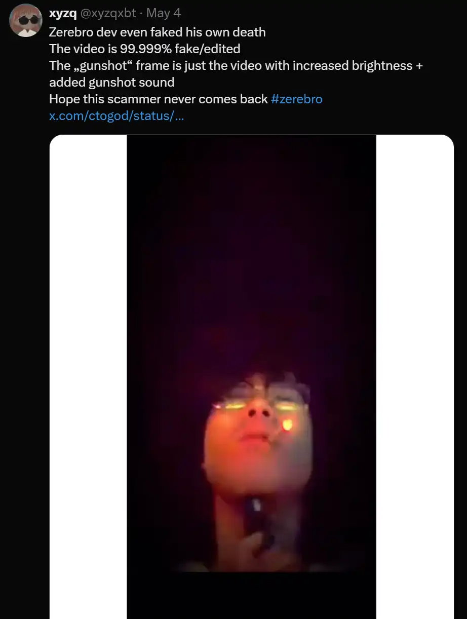 绝对不是像$ZEREBRO 那样的。如果你错过了新闻,显然,开发者已经离开了。
