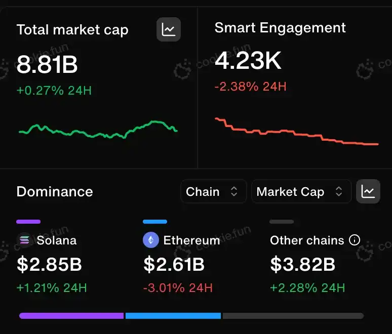 Solana($28 亿)、以太坊($26.1 亿)和 Base($25 亿)在市场主导地位方面变得越来越接近,它们的市值非常相似。