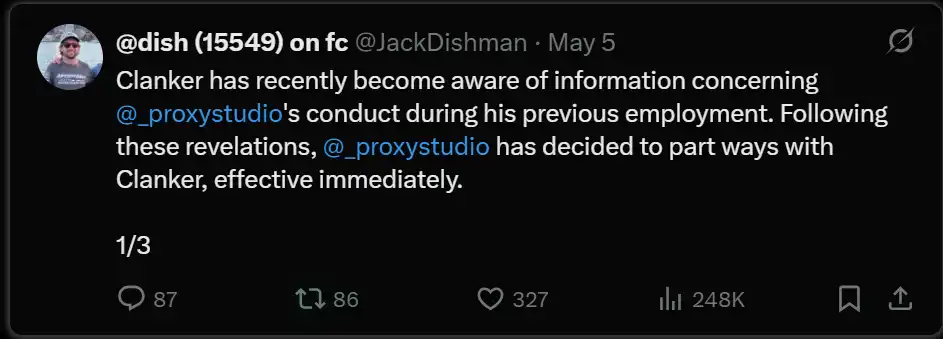 $CLANKER:不幸的是,主要是由于一些戏剧性的事件。
