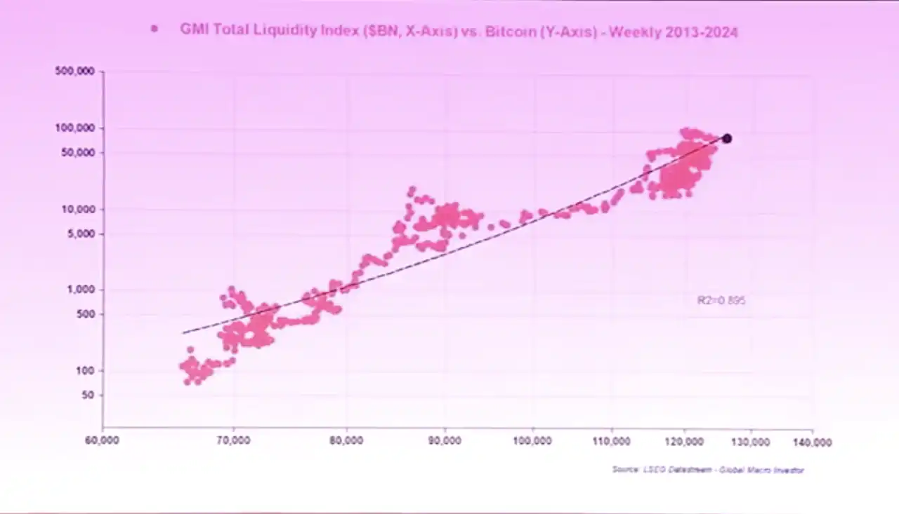 3、流动性驱动一切:美联储净流动性是核心指标。2009 - 2014 年主要依靠资产负债表扩张来提供流动性,之后新增了如银行准备金调节等工具。当下,总流动性(包含 M2)至关重要,它与比特币(90% 相关性)和纳斯达克(97% 相关性)的走势具有惊人的解释力。