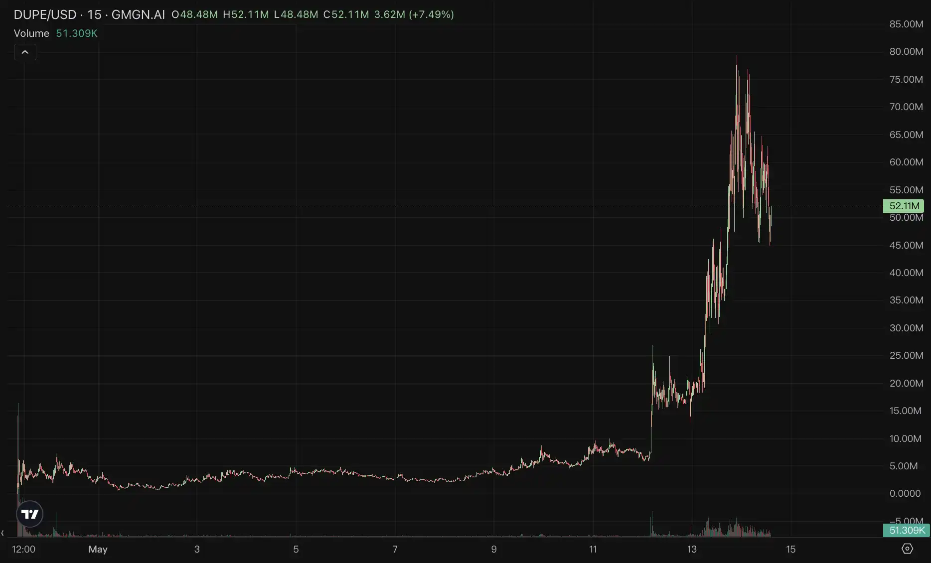 目前 DUPE 市值超过 5000 万美元,24 小时涨幅达 30%。