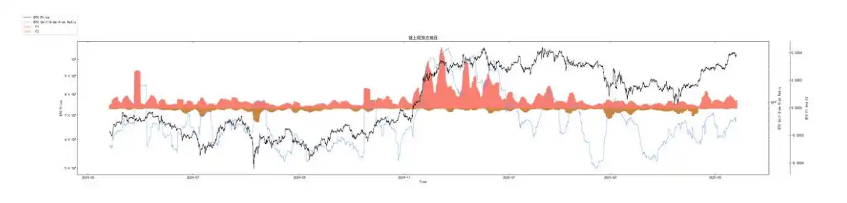 ◦ 图四 (现货总抛压⻛险⽐率): 处于中等偏低⽔平,显⽰市场尚未过热,当前涨势具有⼀定的健康度,并⾮纯粹由短期投机驱动。