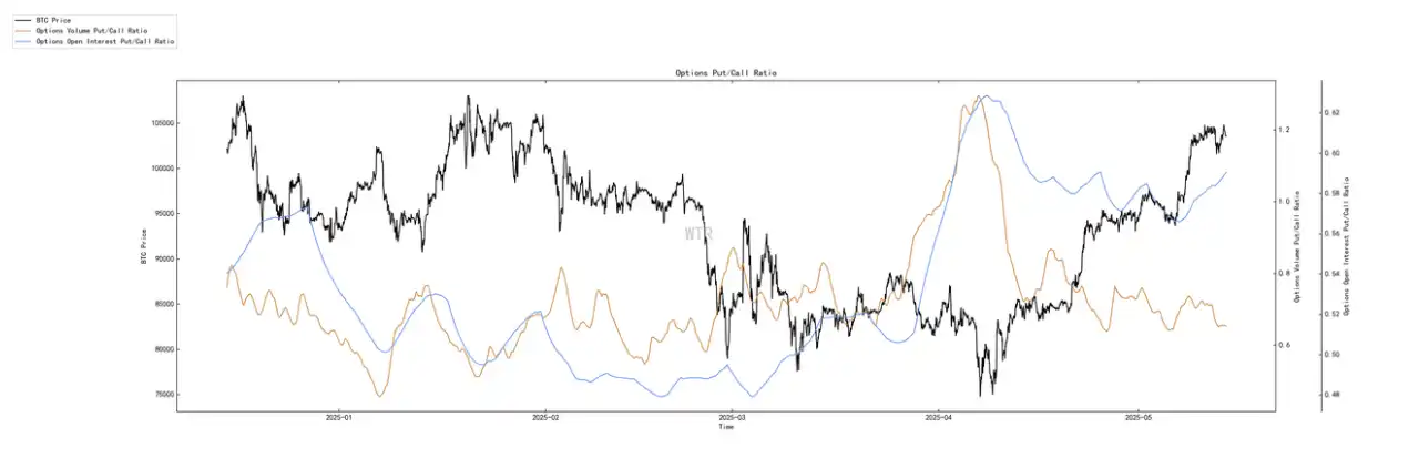 看跌期权⽐例少量上升,交易量和上周持平。