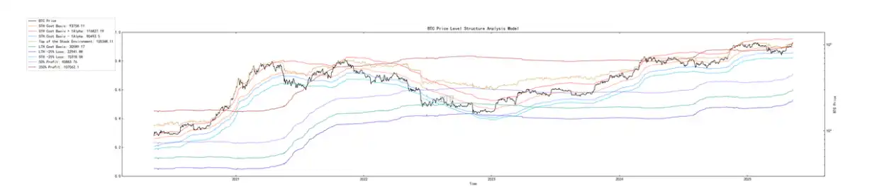 市场的存量顶部在 105000 左右⾯临着存量上限困境。若是后续⽆显著的增量补给,可能会在这个价位封顶。同时,如果市场仍是存量结构,可能市场会在 80000-105000 的区间内进⾏⾼强度博弈的⼤震荡。当然,当前给出的区间是粗略的市场流动性可⽀撑价位区间的测算。如果⾏情出现增量⾏情,情绪挤压的回调,或是深度清算杠杆,可能会打破这个区间。
